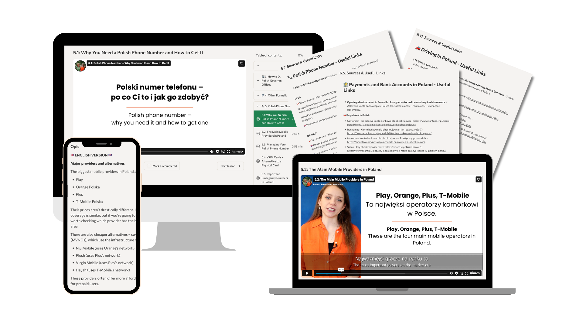 • 11 practical modules covering the key parts of relocating to Poland — from visas and PESEL to housing, banking, healthcare and transport.